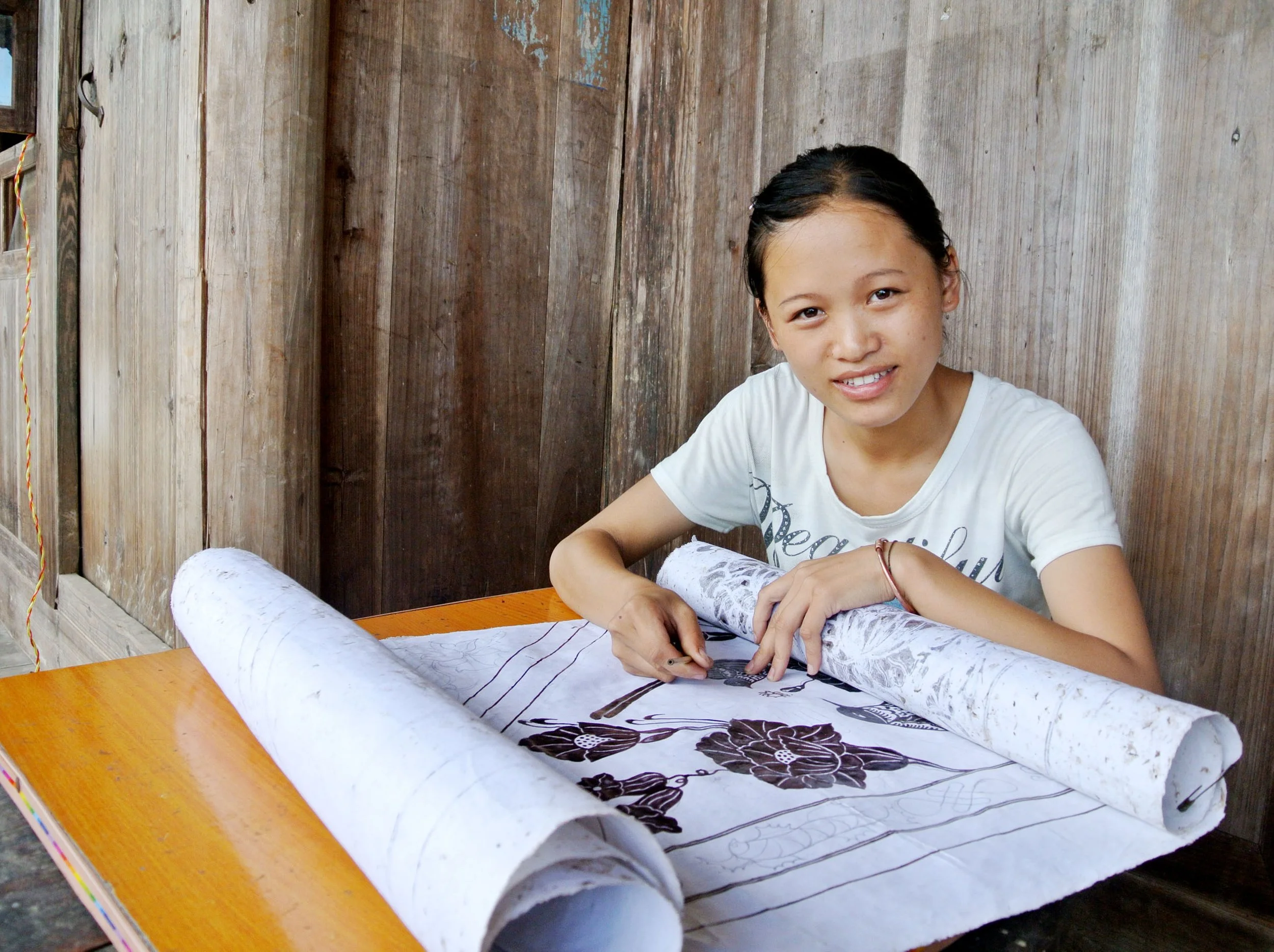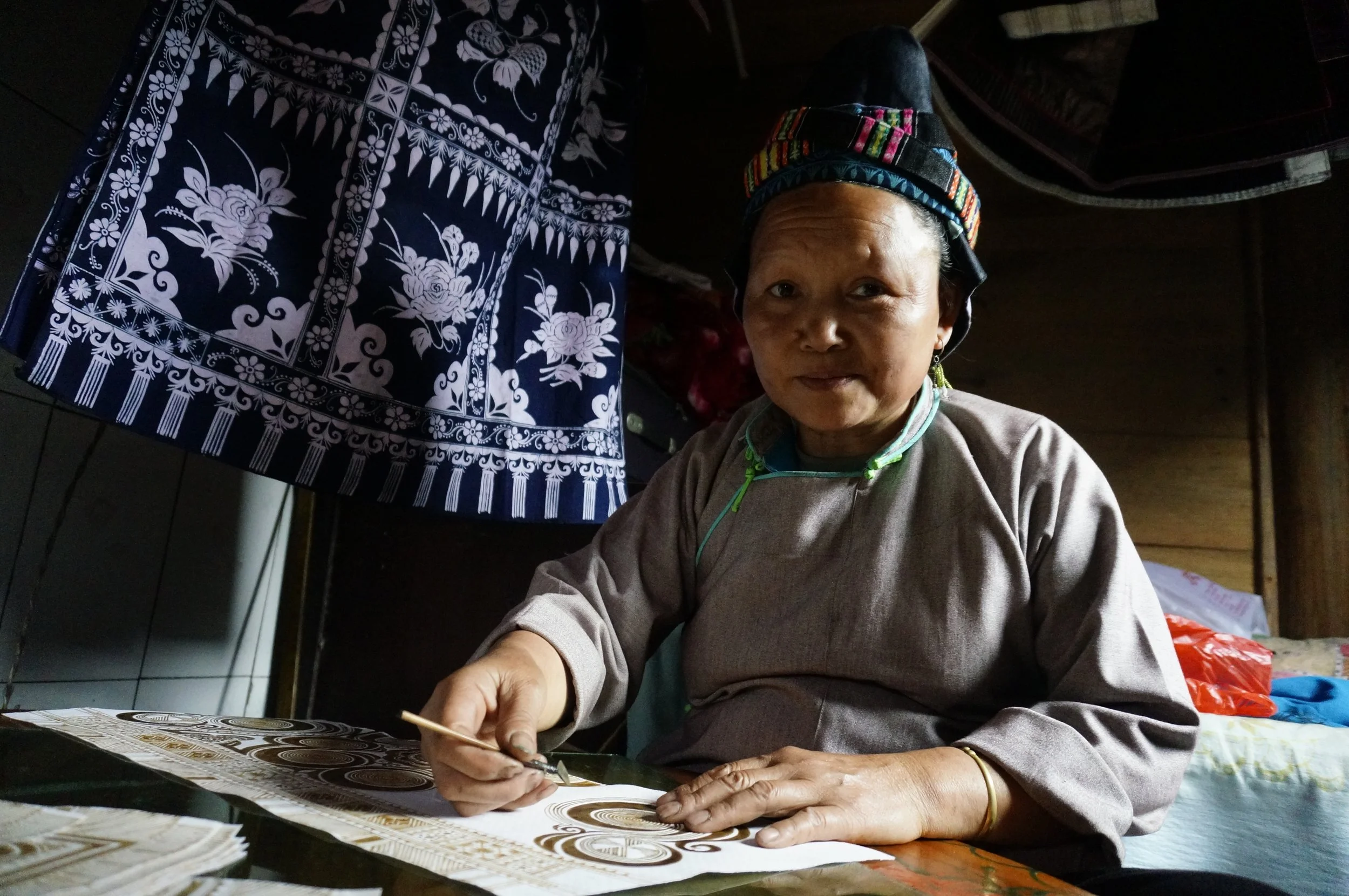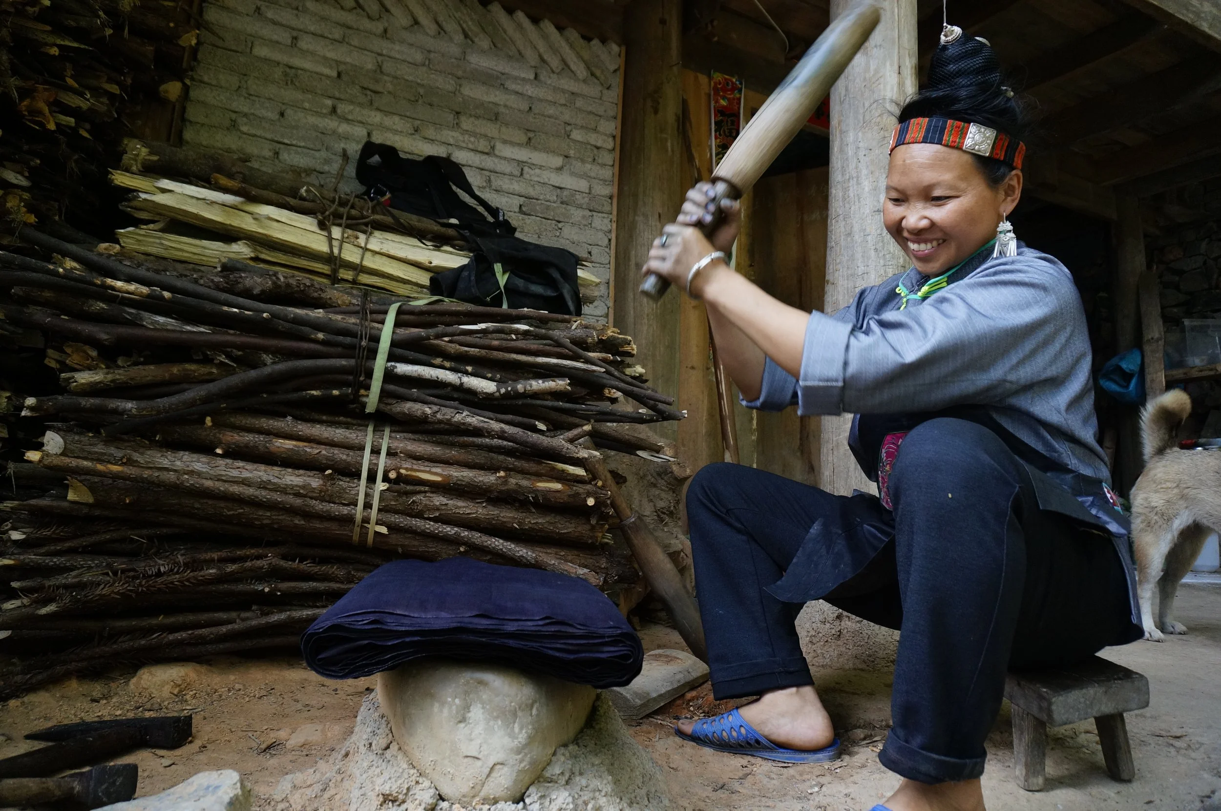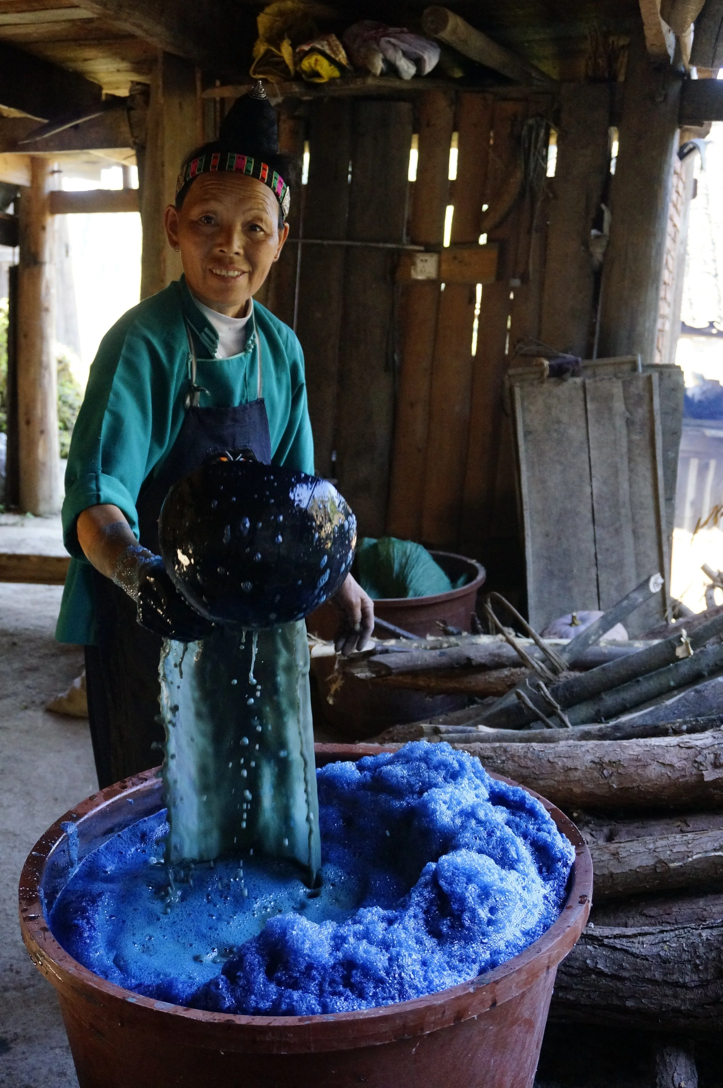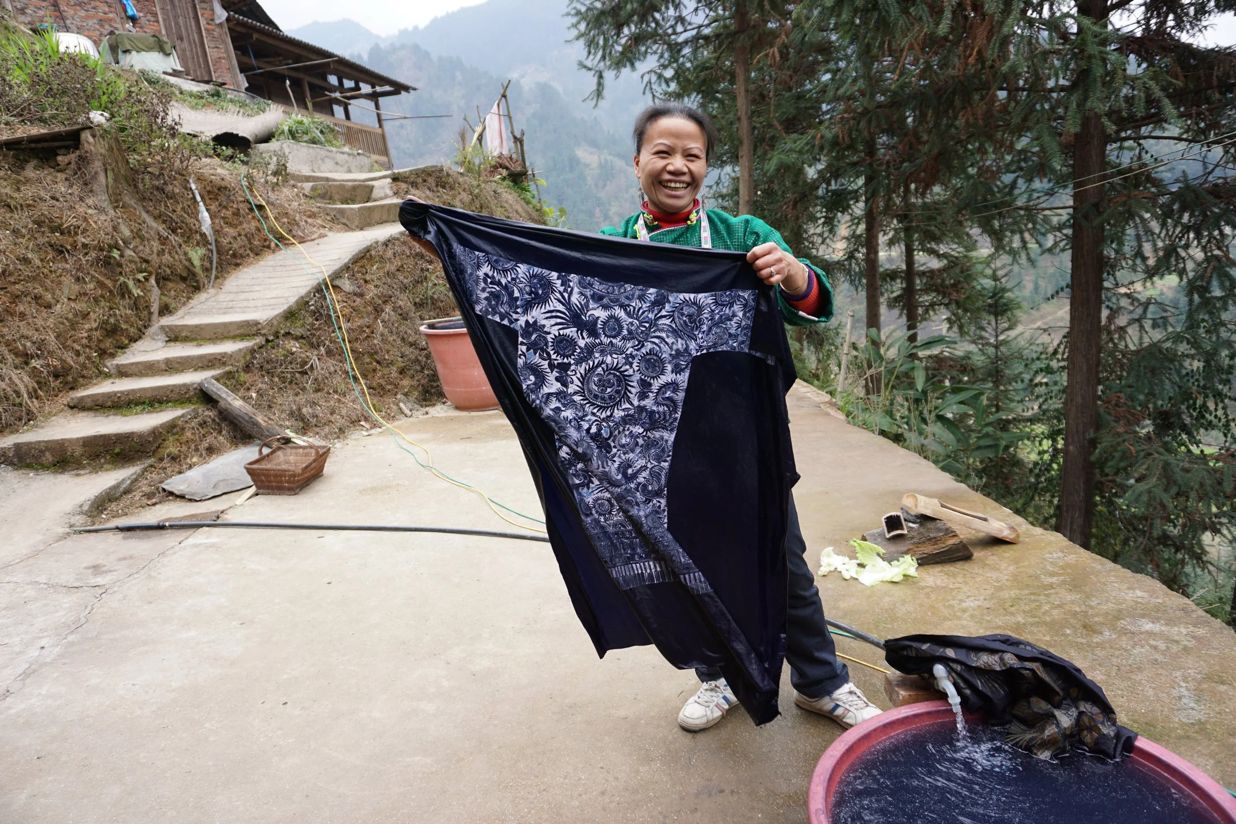 Once harvested, the leaves of indigo are placed in a large barrel with water and a handful of natural ingredients to make the dye. Each shade of 100% plant based indigo is a whisper from the misty mountains of Southwest China.
